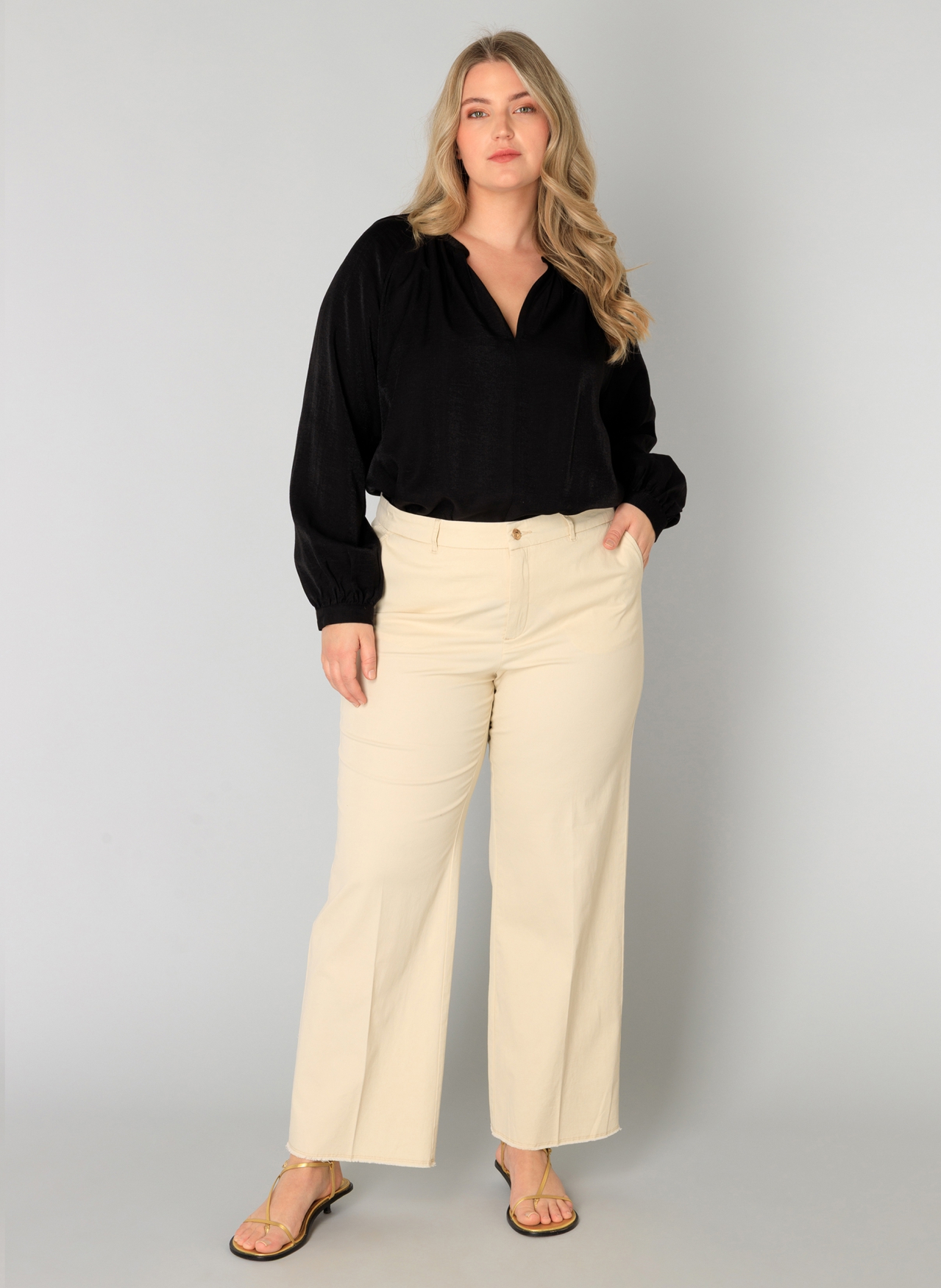 Prezentujemy nasze komfortowe jasnobeżowe spodnie, które idealnie podkreślą Twoją sylwetkę i zapewnią maksymalny komfort na co dzień. Wykonane z wysokiej jakości materiałów, te spodnie to must-have w Twojej garderobie. Klasyczny krój z szerokimi nogawkami podkreśla kobiecą sylwetkę, jednocześnie zapewniając wygodę i swobodę ruchu. Dodatkowo, dzięki uniwersalnemu kolorowi oraz modnym szerokim nogawkom, doskonale sprawdzą się zarówno na co dzień, jak i na bardziej eleganckie okazje.